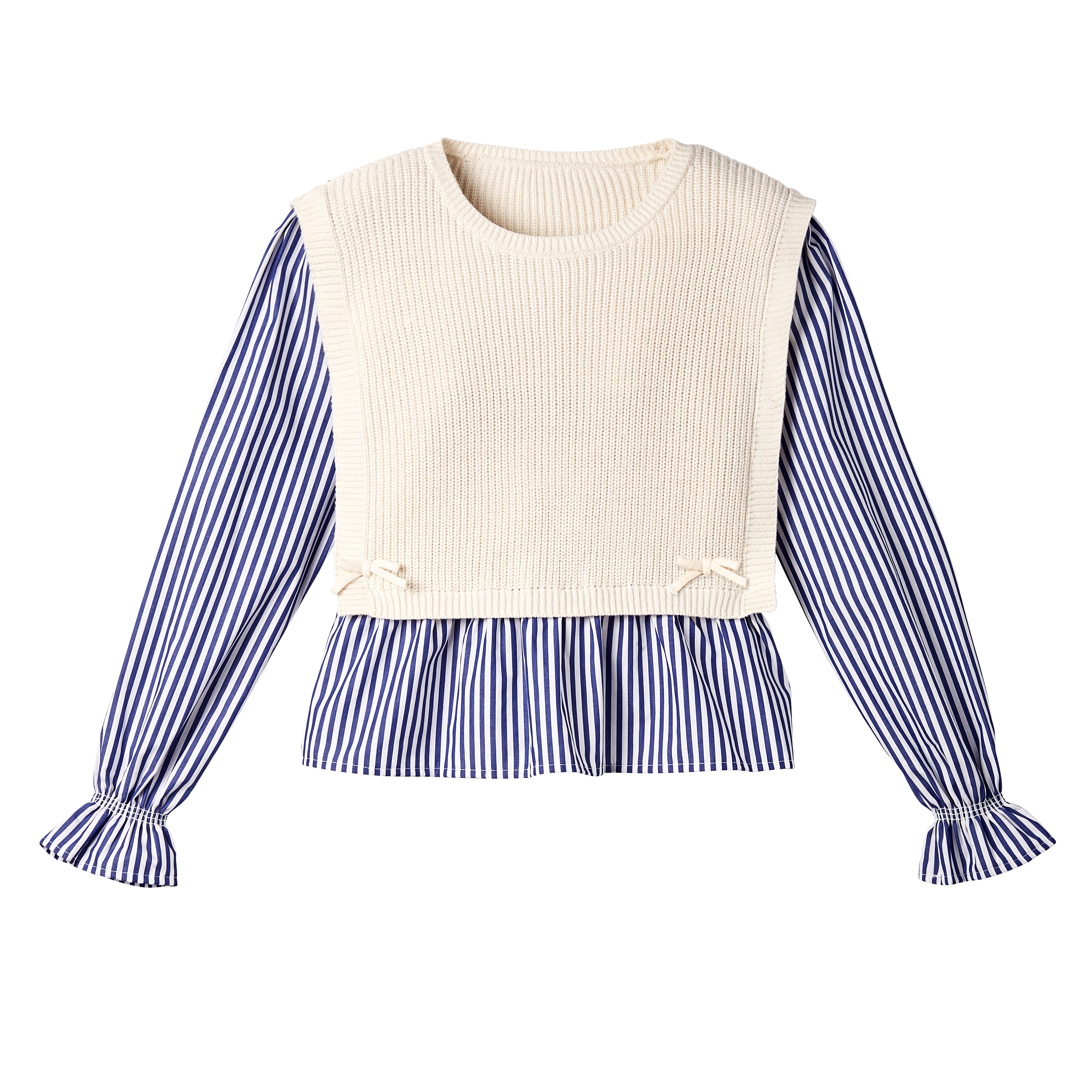 Blouse rayée avec gilet en tricot