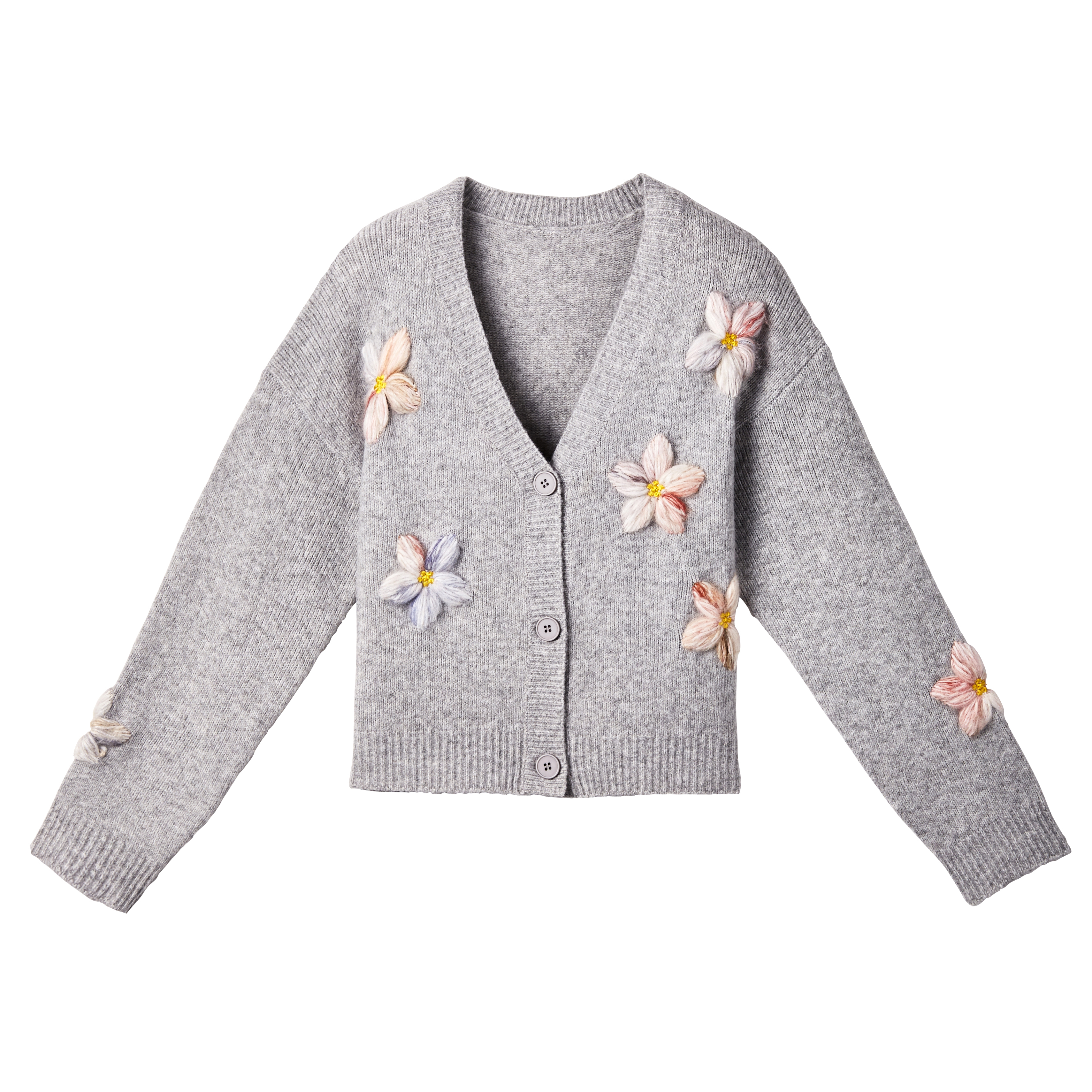 Cardigan en tricot avec fleur appliquée en 3D